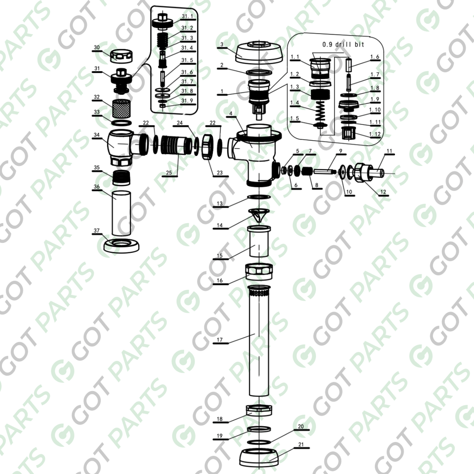 Polished Chrome Finish, Fixture Connection Top Spud, Single Flush, Exposed Manual Water Closet Flushometer