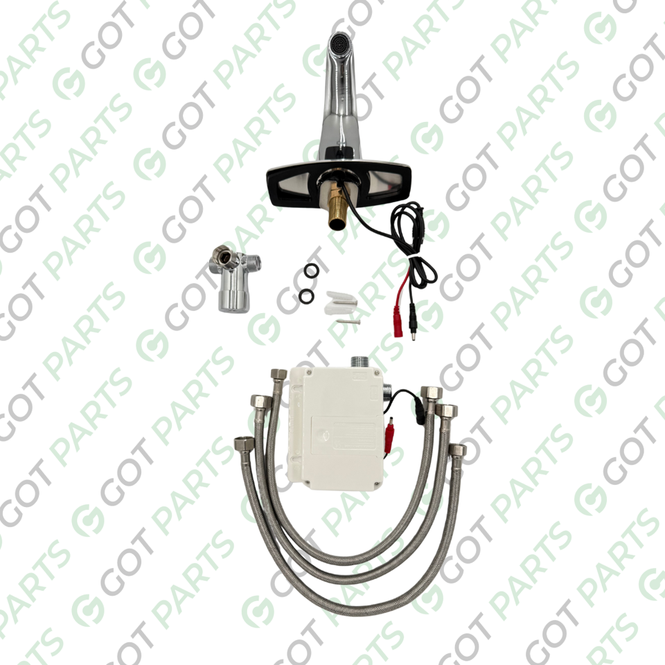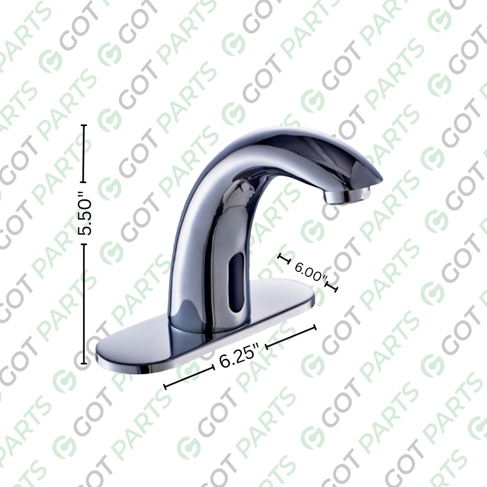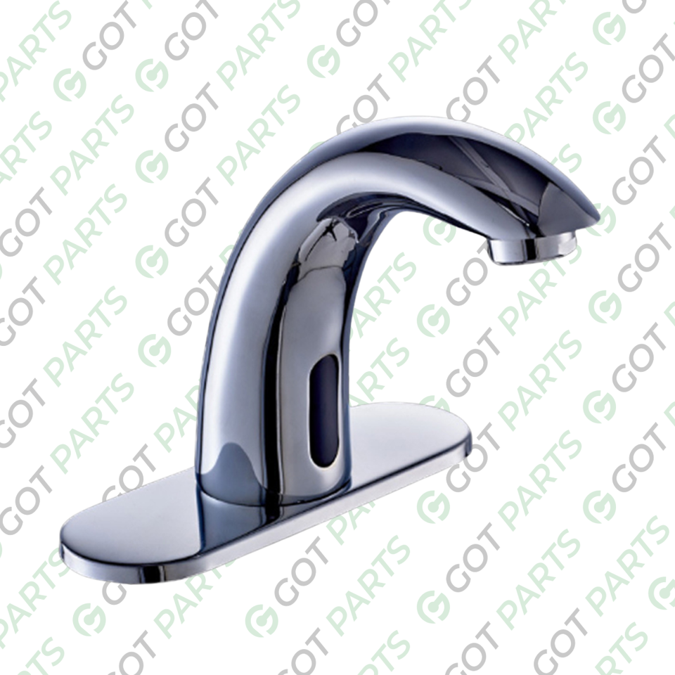 Stainless Steel Faucet with Sensor, Chrome. Bathroom Sink Tap Deck Mounted Chrome Single Handle Single Cold-Hot Water; Zinc Body. Elegant design and practical operation. Control box connects to standard 110/120v outlet.
