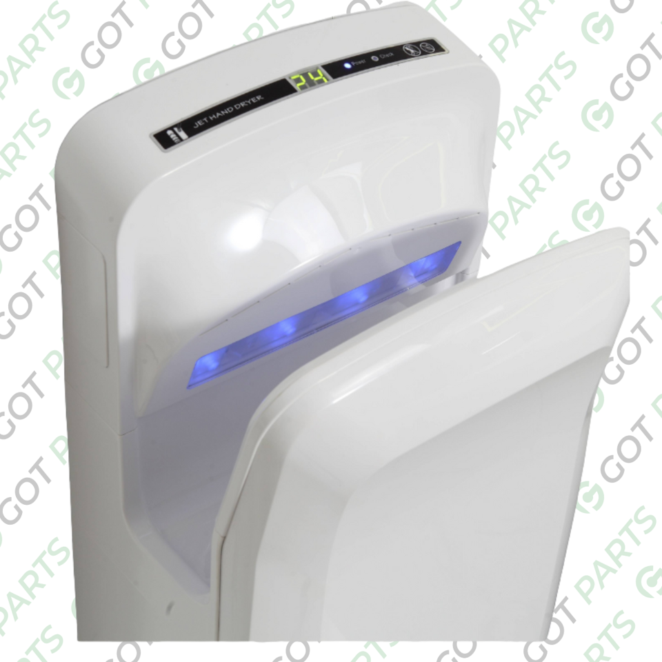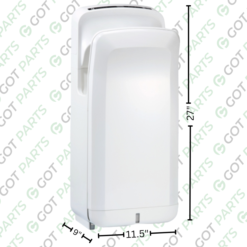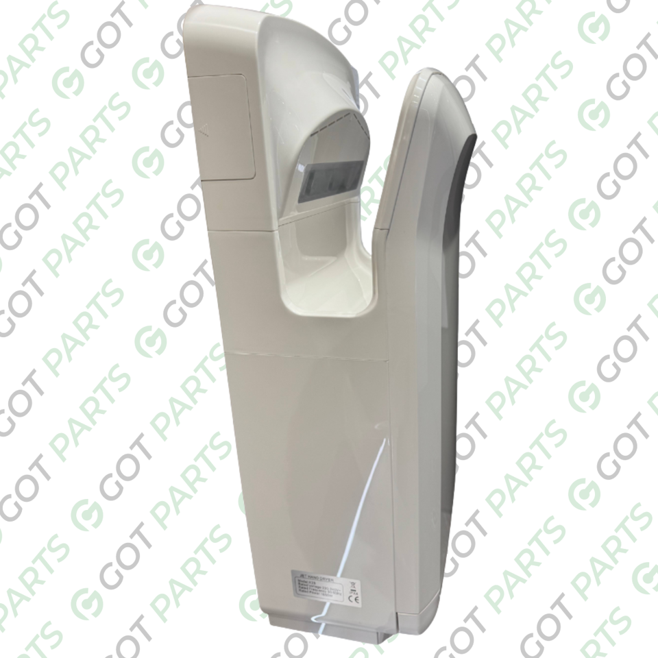 ABS Plastic Electric Vertical Jet Hand Dryer, White. Ideal for Commercial washrooms.